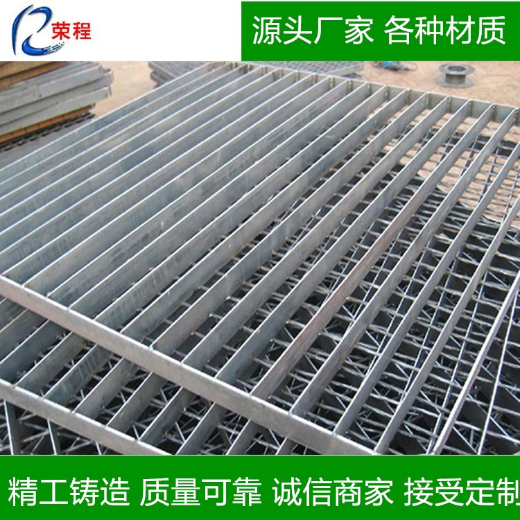榮程格柵特點:牢固的網格壓焊結構使其具有高承載,結構請,便于吊裝等特點,外形美觀,經久耐用,熱浸鋅表面處理使其具有相當好的防腐能力,表面光澤美觀,通風,采光,散熱,防爆,防滑性能好,防積污物。