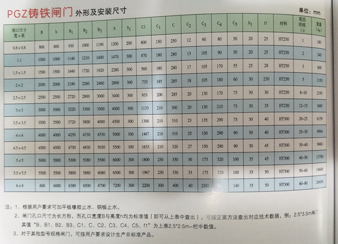 鑄鐵閘門有方形、圓形兩種。鑄鐵閘門一般由門葉和門框兩部分組成,門體和門框的材料為鑄鐵,一般整體鑄造、整體加工。 門體一般采用面板與加強肋的結構,面板可做平面或拱形。門體一般整體鑄造和機加工,但尺寸較大的采用分塊組成式可以根據客戶需要鑄造大小鑄鐵閘門。PGZ型鑄鐵閘門的尺寸與安裝。
