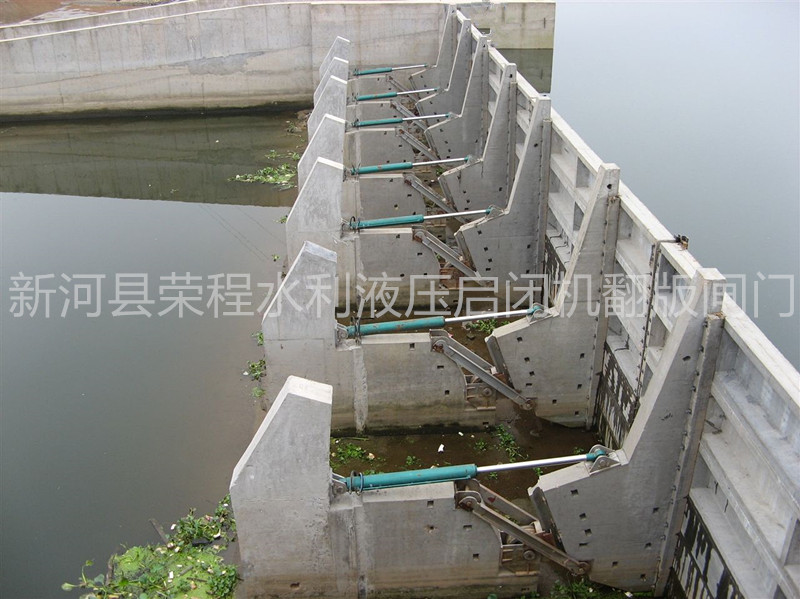 翻板閘門于液壓啟閉機,這種閘門能夠在任何水位下準確、安全開啟和關閉,以及在未開動液壓系統前提下,達到相應水位后仍能進行正常開啟和關閉,使翻板閘門在運行中更可靠、安全。