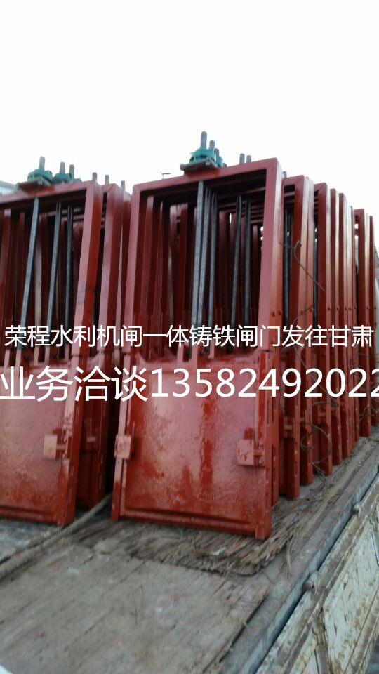 新河縣榮程水利機械廠專業生產銷售各種材質閘門尺寸從從0.2x0.2—6.5x6.5m6.5x6.5m米并根據客戶需要鑄造矩形閘門批量生產銷售。鑄鐵閘門成形后的形狀多數為方形、圓形,也有扇形,弧形等。但是在鑄造上卻有不同的要求,有鑄鐵的,鑄鐵鑲銅的,鋼的,不銹鋼等20多種規格型號的閘門。