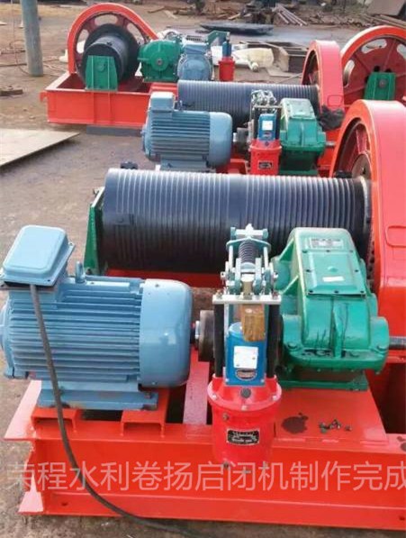 卷揚機通過齒輪箱和減速齒輪減速,減速過程大,速比大。有時它通過滑輪組以擴大比例,從而可以獲得更大的開啟力,這適用于具有較大孔徑和水頭的閘門。鋼絲繩圍繞繩索鼓,一般包圍單層,也可以圍繞多層。因此,提升機的跳閘實際上是無約束的,并且以更大的行程打開閘門或深孔閘門是方便的。鋼絲繩的力方向可以適當(dāng)擺動,也可以通過附加的埋入式轉(zhuǎn)向滑輪來改變。因此,閘門與提升機之間的協(xié)作非常靈活。在選擇電力時,升降和關(guān)閉速度較快,適合于事件閘門的閘門和閘門的開閉。